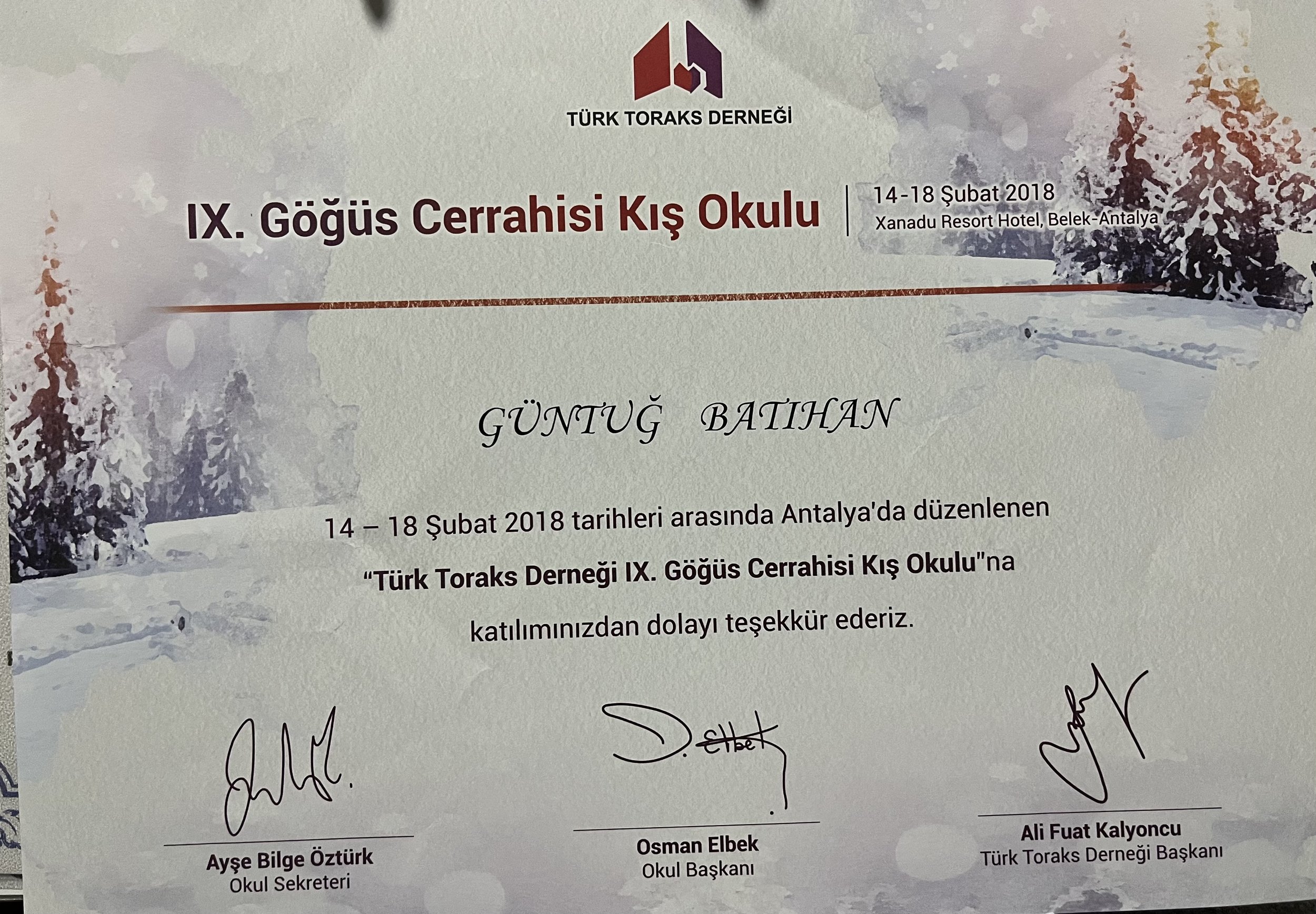 Ben Doç. Dr. Güntuğ Batıhan. Göğüs Cerrahisi Uzmanı olarak akciğer ve göğüs hastalıklarının tanı ve tedavisinde bilimsel kılavuzlara dayalı, kanıta dayalı yaklaşımlar uygulamaktayım. Tıp eğitimimi Dokuz Eylül Üniversitesi Tıp Fakültesi'nde, uzmanlık eğitimimi ise Sağlık Bilimleri Üniversitesi’nde tamamladım.